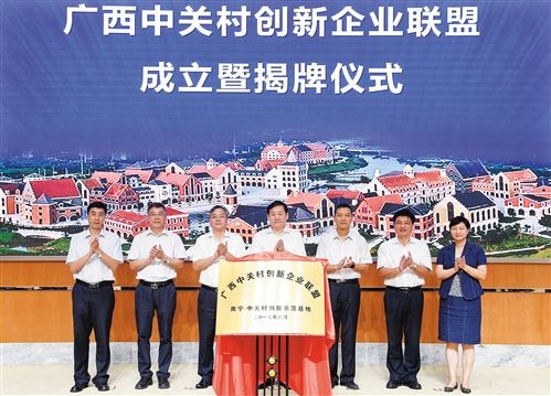 在南寧·中關(guān)村創(chuàng)新示范基地,廣西中關(guān)村創(chuàng)新企業(yè)聯(lián)盟成立暨首批會(huì)員揭牌儀式同時(shí)舉行。截至今年2月,中關(guān)村企業(yè)累計(jì)在廣西設(shè)立子公司221家,投資額總計(jì)94億元,分公司達(dá)549家。廣西中關(guān)村創(chuàng)新企業(yè)聯(lián)盟的成立對(duì)于加快聚集創(chuàng)新要素、構(gòu)建創(chuàng)新發(fā)展生態(tài),發(fā)揮南寧·中關(guān)村創(chuàng)新示范基地的輻射作用和溢出效應(yīng),將起到重要推動(dòng)作用。