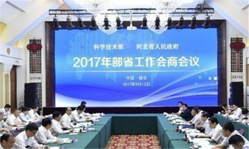 科學技術部、河北省2017年部省工作會商會議12日在雄安新區召開。全國政協副主席、科技部部長萬鋼,河北省委書記、省人大常委會主任趙克志在會議上分別作重要講話。河北省省長許勤主持會議。