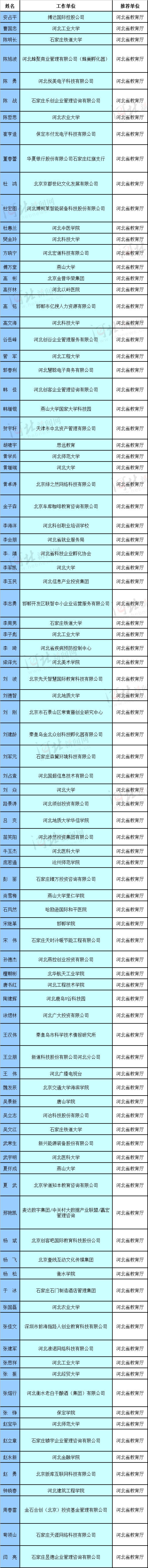 河北省入選全國萬名優秀創新創業導師人才庫首批入庫導師名單