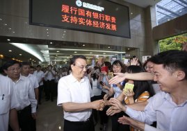 圖為李克強總理2016年6月20日下午到中國建設銀行考察。 從國務院常務會議部署,到普惠金融事業部掛牌,五大國有商業銀行落實李克強總理的要求,用了不到兩個月時間。 5月3日,李克強主持