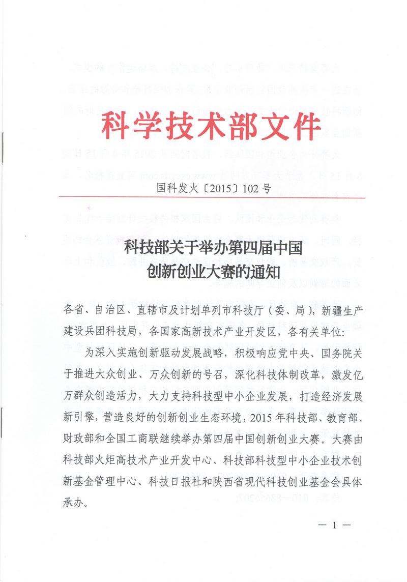 附件: 科技部關(guān)于舉辦第四屆中國(guó)創(chuàng)新創(chuàng)業(yè)大賽的通知