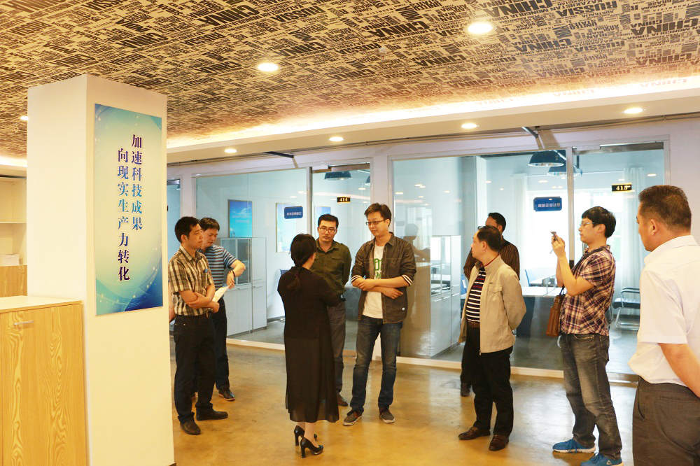 隨后,一行人又來到DCT創客空間四層參觀——邯鄲市技術交易中心的駐地。王江濤向大家介紹了邯鄲市技術交易中心所在的意義:邯鄲高科將依托邯鄲市技術交易中心科技信息平臺建設與運營的經驗,利用自身的優勢,為園區企業及創客們提供更多更優質的“軟服務”。 通過信息互聯互通、資源開放共享、市場聯合拓展的協同創新機制,挖掘企業需求,整合科技成果資源,促進科技資源供需對接,推動技術轉移與成果轉化工作,促進產業升級與產業轉型;通過完善的創新服務網絡,集成利用科技中介服務資源,實現技術轉移服務一體化,提自身的公共服務水平?疾旖M對這里的配套服務和設施十分滿意,并表示對常德市的眾創空間將有很好的借鑒作用。