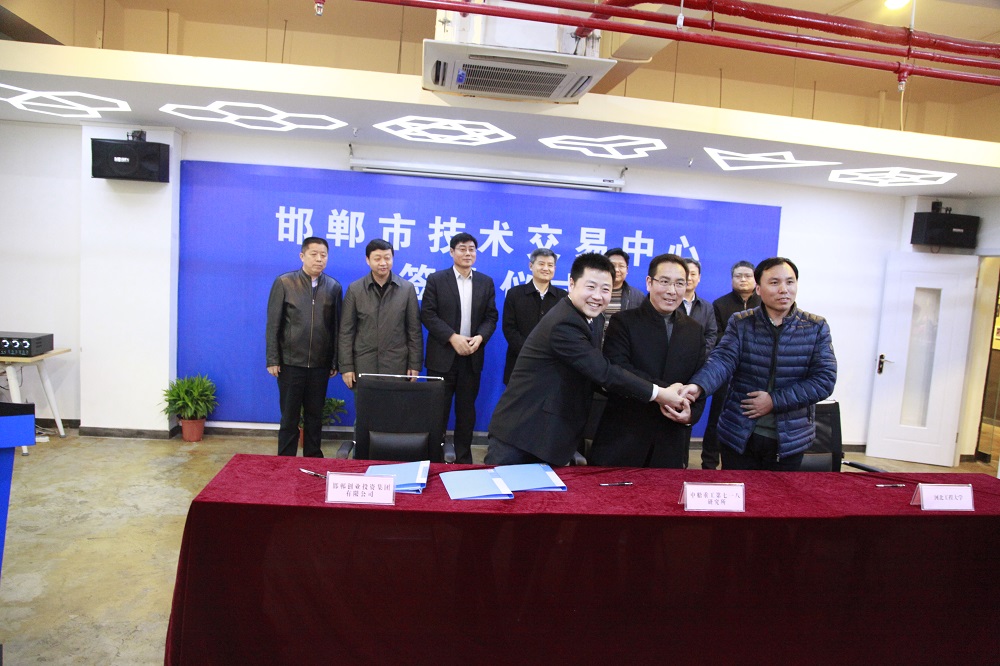 2016年12月23日下午,邯鄲創(chuàng)業(yè)投資集團(tuán)有限公司與河北工程大學(xué)、中船重工第七一八研究所在DCT創(chuàng)客空間會(huì)議室就邯鄲市技術(shù)交易中心合作事宜正式簽訂了戰(zhàn)略合作協(xié)議。邯鄲市政府黨組成員王建明、市政府副秘書長丁向平、邯鄲經(jīng)濟(jì)技術(shù)開發(fā)區(qū)管委會(huì)副主任楊獻(xiàn)仲、投資促進(jìn)局劉鎰南、邯鄲市科技局局長申陸峰、副局長朱春雷、中船重工第七一八所研究院所長李俊華、副所長王少波、河北工程大學(xué)副校長郭鴻湧出席了簽約儀式。